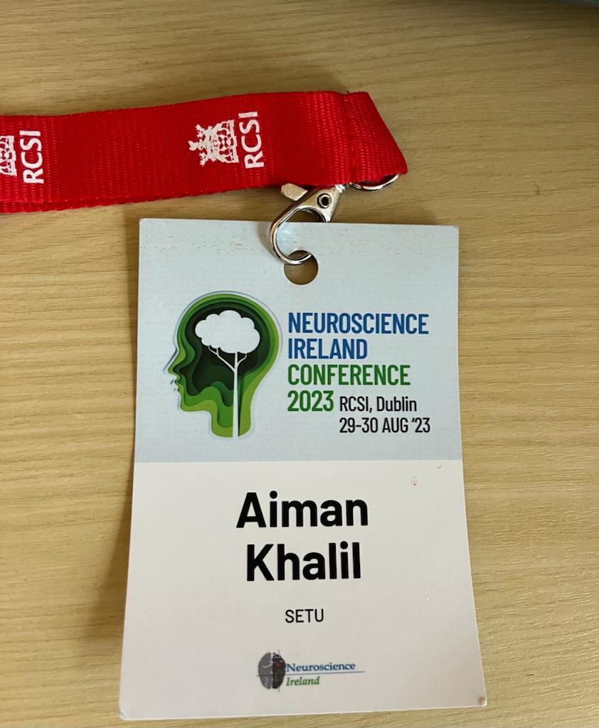 Of attending the conference, Aiman said ”Attending the conference exposed me to a wide range of cutting-edge research and advancements in neuroscience. The presentations and talks delivered by renowned scientists and experts provided valuable insights into the latest discoveries and trends in the field. The entire experience at the Neuroscience Ireland Conference was both exciting and amazing. Not only I had the opportunity to showcase my research to a diverse and knowledgeable audience, but I also got the chance to interact and learn from other fellow researchers working in the field of neuroscience.”